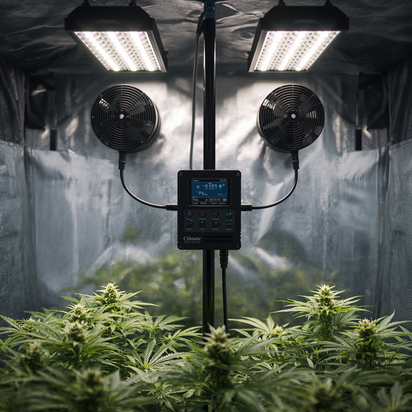 Verify electrical compatibility and total load before connecting fans. Route cables safely; keep probes away from water and direct mist. Intended for legal horticulture; buyer must comply with EU/local electrical and building codes.