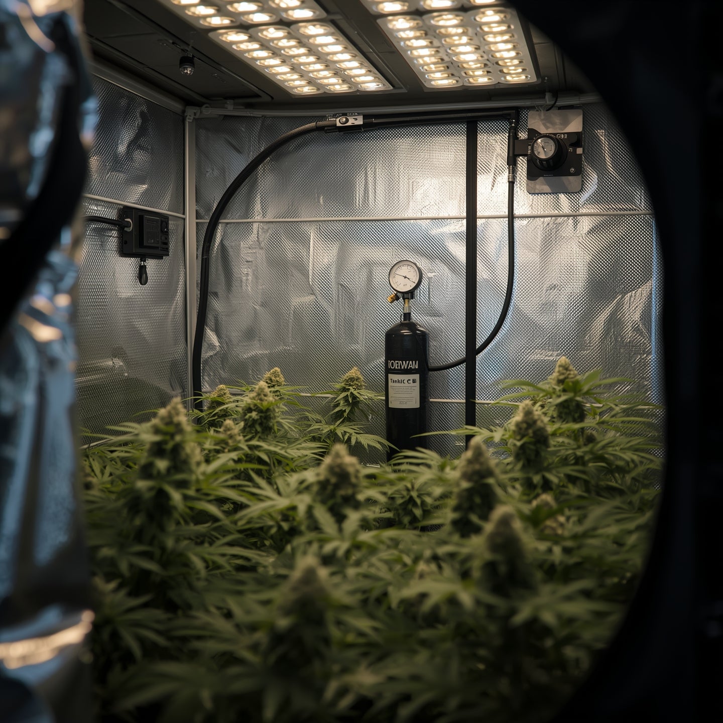 Use only in well-ventilated, non-occupied grow spaces. Secure the cylinder upright with a strap/chain. Follow local regulations for storage, transport and use of compressed gases. Intended for legal horticulture within the EU.
