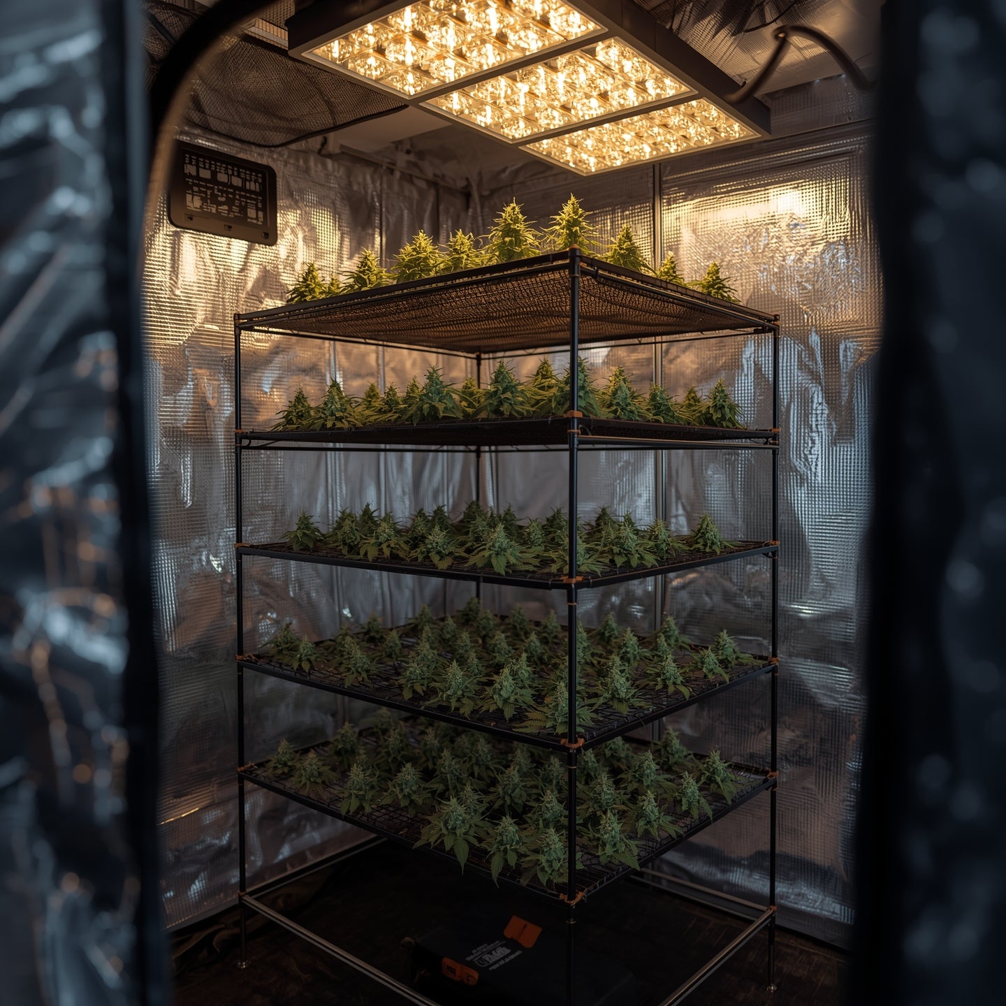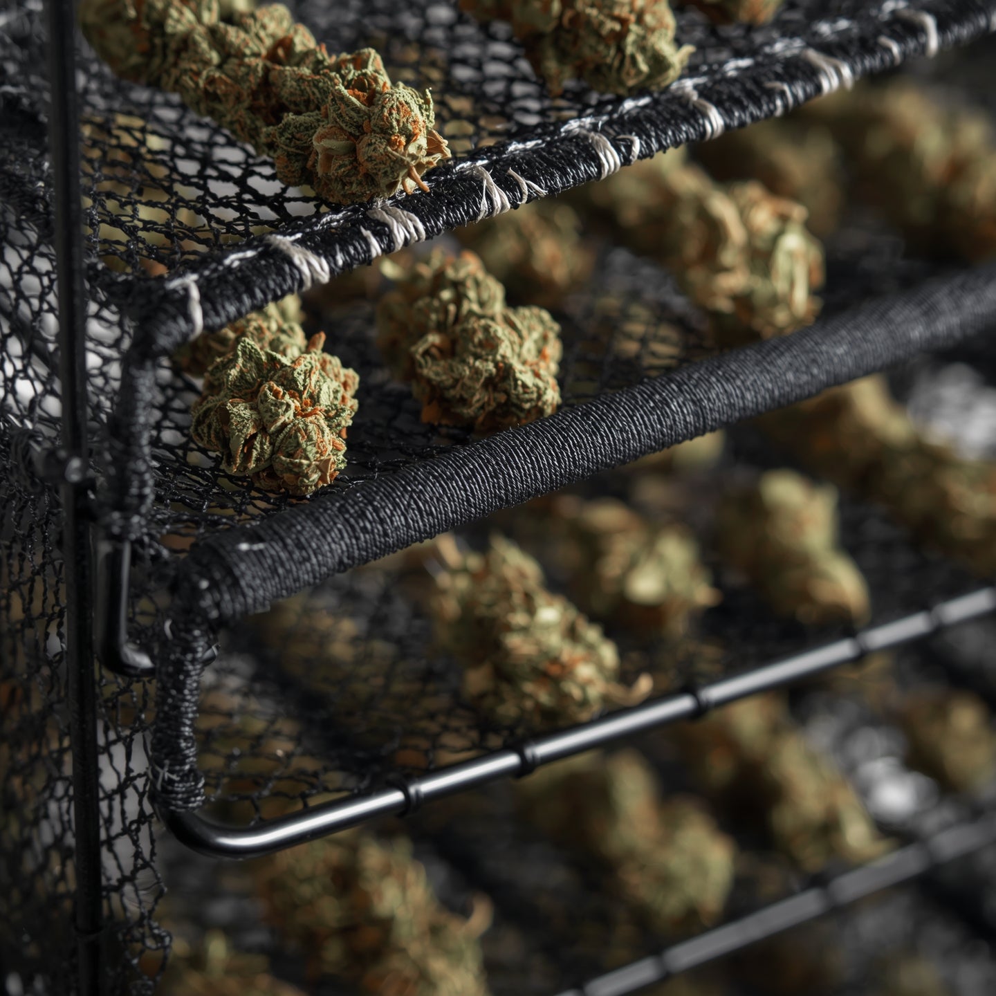 Compact, collapsible mesh rack for fast, even drying. Four breathable tiers with rigid steel rings keep flowers spaced and well-ventilated for clean results.
