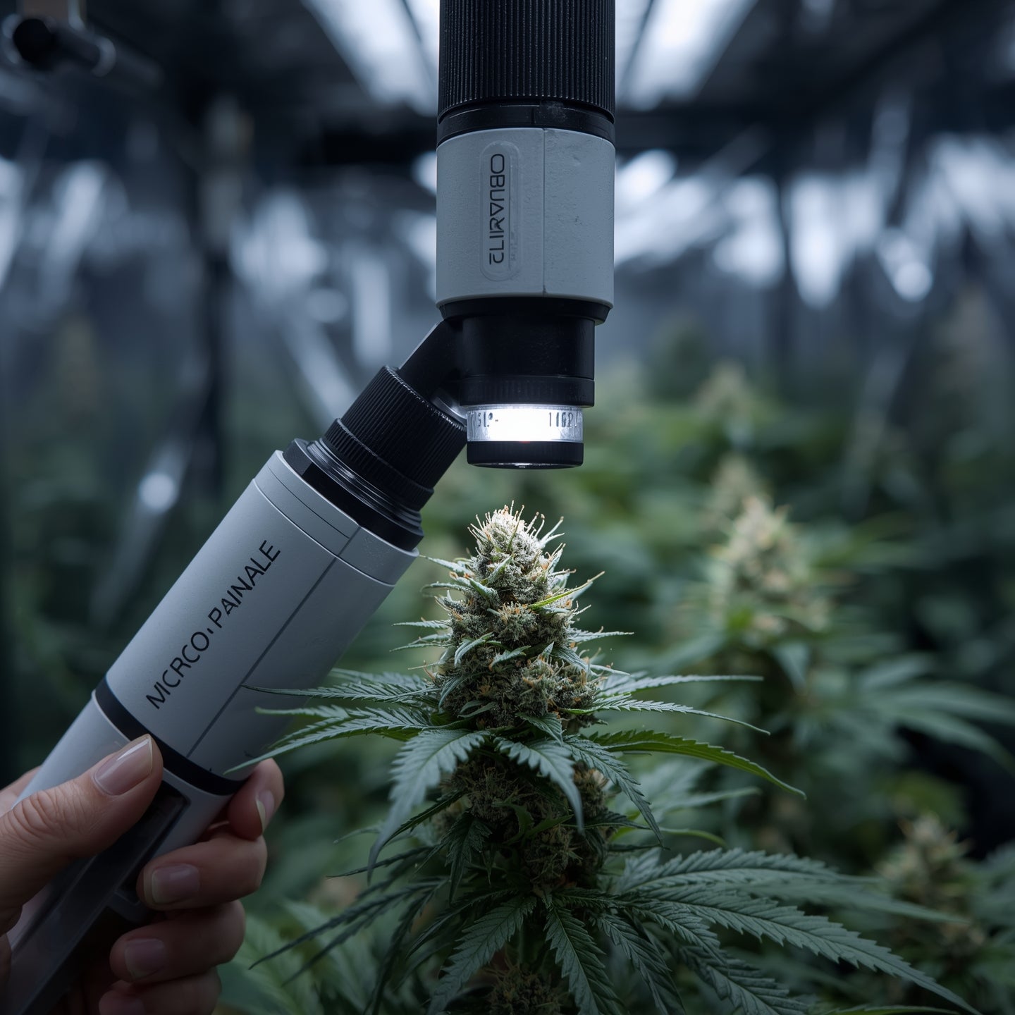Pocket-size optical microscope with adjustable zoom and LED illumination. Inspect trichomes, pests, and plant tissue on the spot for confident harvest timing and diagnostics.