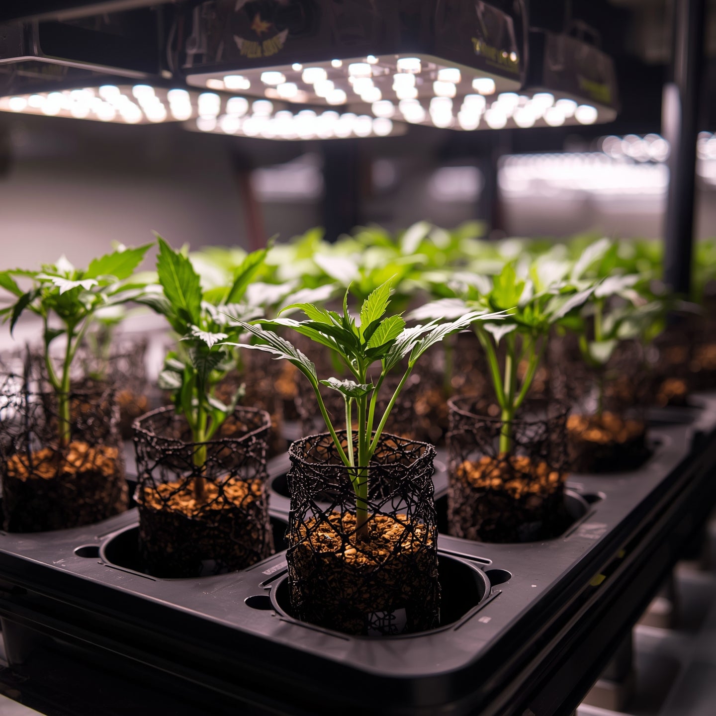 Plastic slotted net cup for hydroponic systems and DIY lids. The open mesh supports rapid drainage and high oxygenation around inert media like clay pebbles or rockwool.