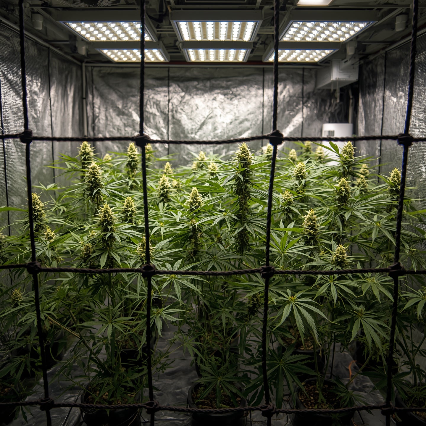 Soft, flexible trellis net for low-stress training and uniform canopy development in compact spaces. Helps spread branches for better light penetration and airflow.