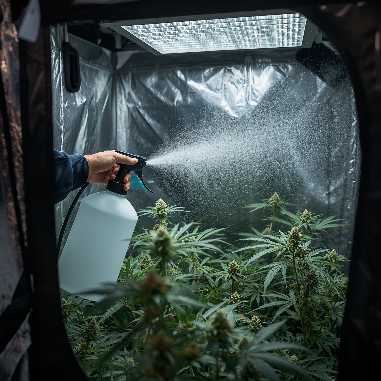 Compact pressure sprayer with adjustable nozzle for foliar feeds, IPM rinses, and gentle humidification. Ergonomic handle and pressure-release valve for safe, even coverage.