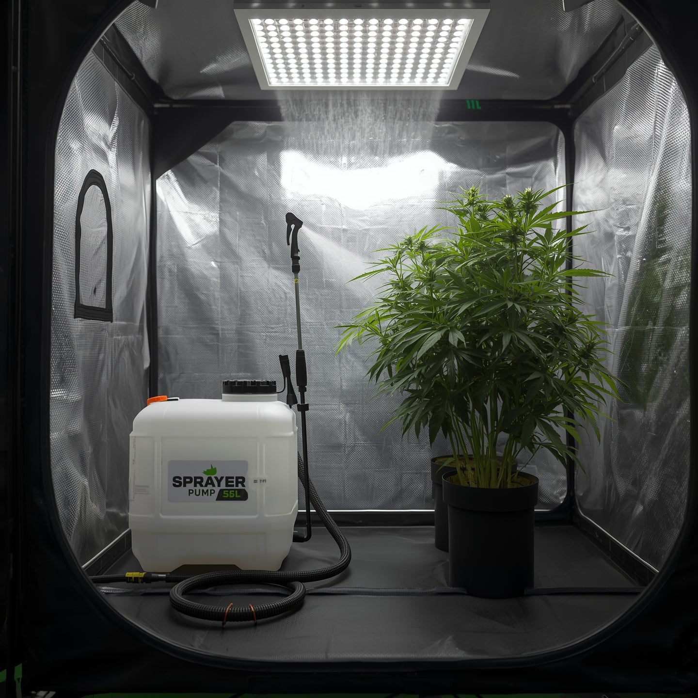 Large-capacity pressure sprayer for full-room coverage. Shoulder strap, long lance, and adjustable nozzle deliver efficient, consistent application across bigger canopies.