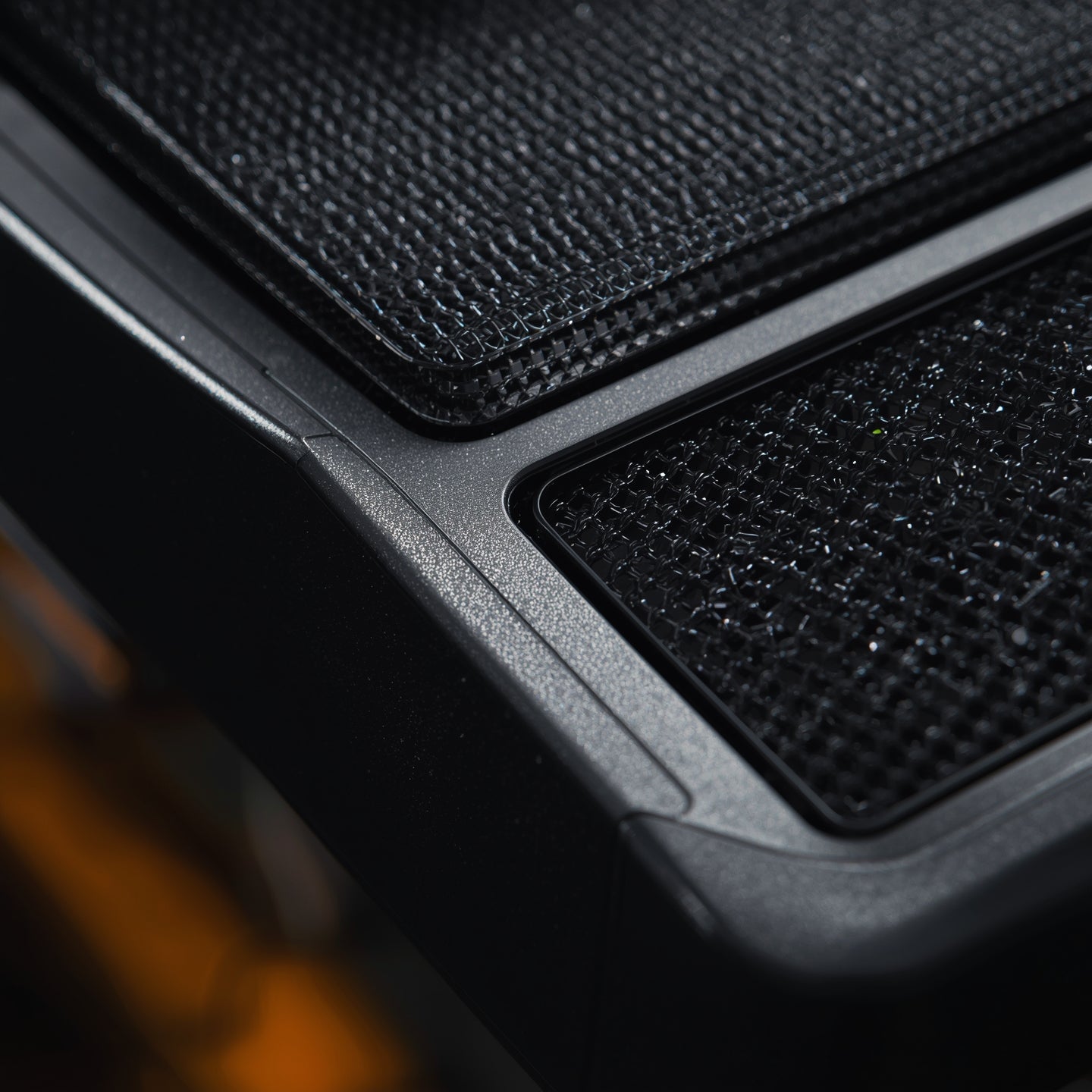 Angled trimming bin designed to support wrists and forearms, reduce fatigue, and keep material contained. Smooth, anti-static surface for cleaner, faster work.